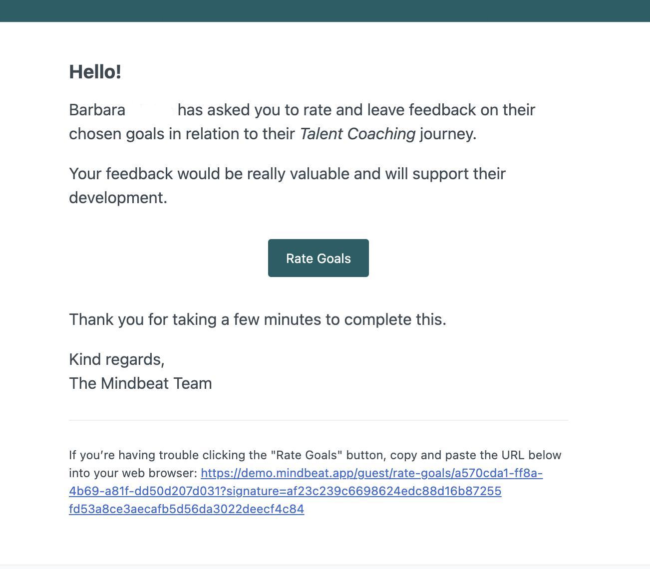 Once your colleague has set their coaching goals and they have been locked in, usually after their first session, you will receive an email letting you know. You will then be asked to rate their current effectiveness and share your observations. Be as honest and specific as you can. Your feedback goes directly to your colleague and helps them and their coach focus on what matters most from the start.