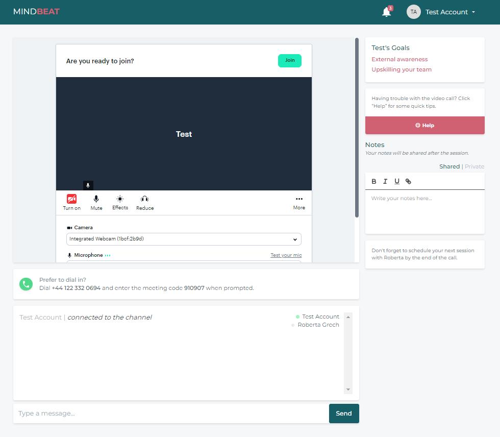 - Notes: During and after the session, you and your coach will have access to shared notes. These will be visible to both of you after the session ends. You will receive an email notification about your notes 15 minutes after the session.